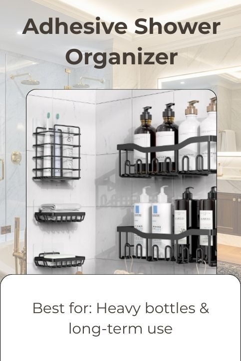 That’s why adhesive shower caddies have become one of the most popular bathroom organization solutions on Pinterest and Amazon. They are no-drill, rustproof, strong, and stylish—perfect for modern homes and apartments.