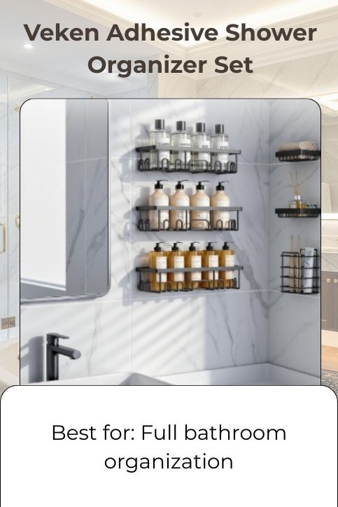 4. Veken Adhesive Shower Organizer Set – Best Complete Set