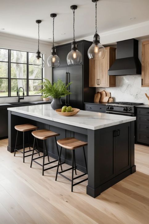 04. Modern Farmhouse Kitchen with Black & Wood Cabinets