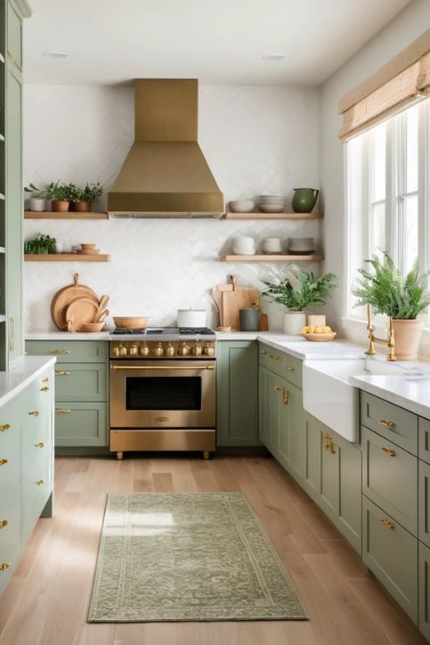 9. Modern Farmhouse Kitchen with Sage Green Cabinets