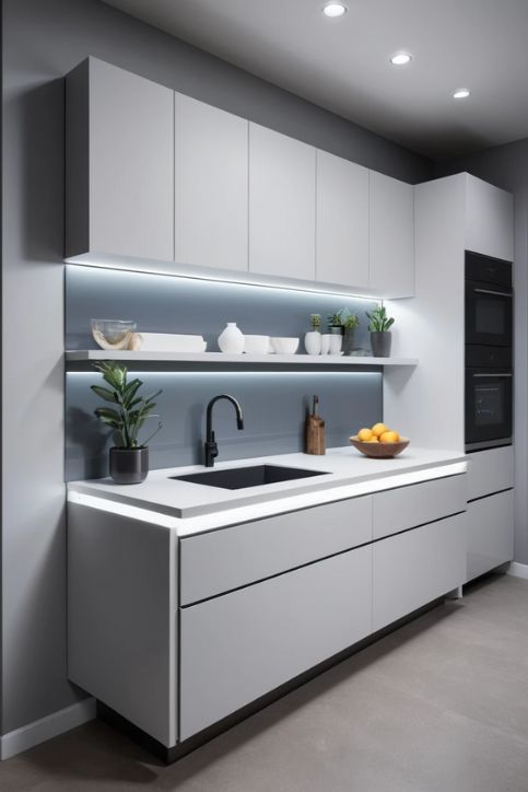 Choose cool-toned LEDs to create a crisp, modern feel. Highlight the clean countertop surface in your photos. Use shadow play to make the lighting appear more dramatic for Pinterest.