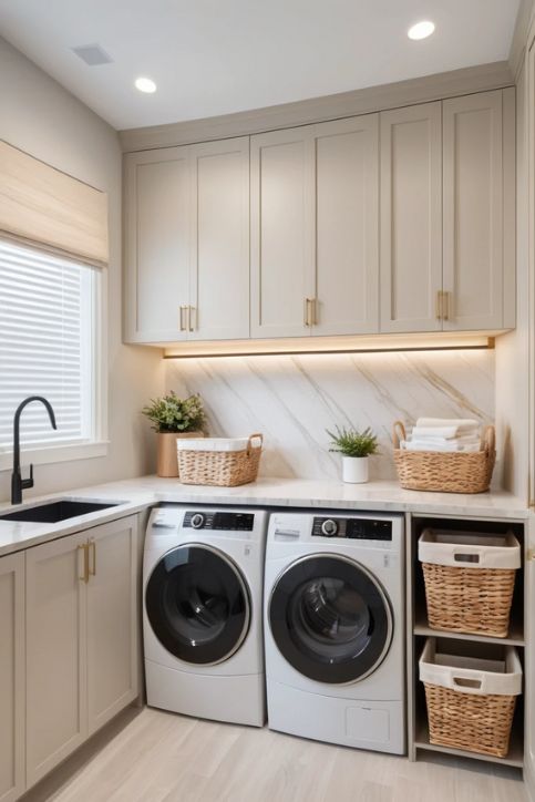 A modern laundry room doesn’t just upgrade your home—it upgrades your daily routine. With the right mix of luxury finishes, smart design, and intentional décor, even laundry day starts feeling like a mini spa moment.