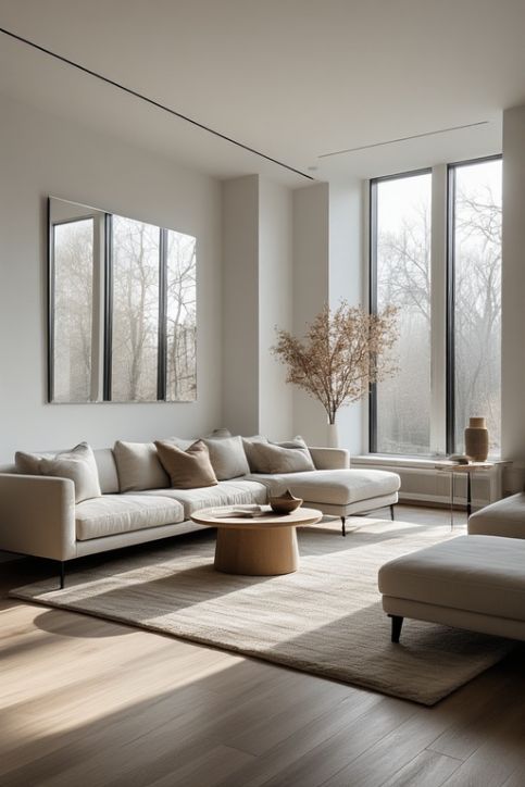 Keep the layout open and allow natural light to flow freely. Avoid blocking windows with heavy furniture — light is the ultimate minimalist luxury.
