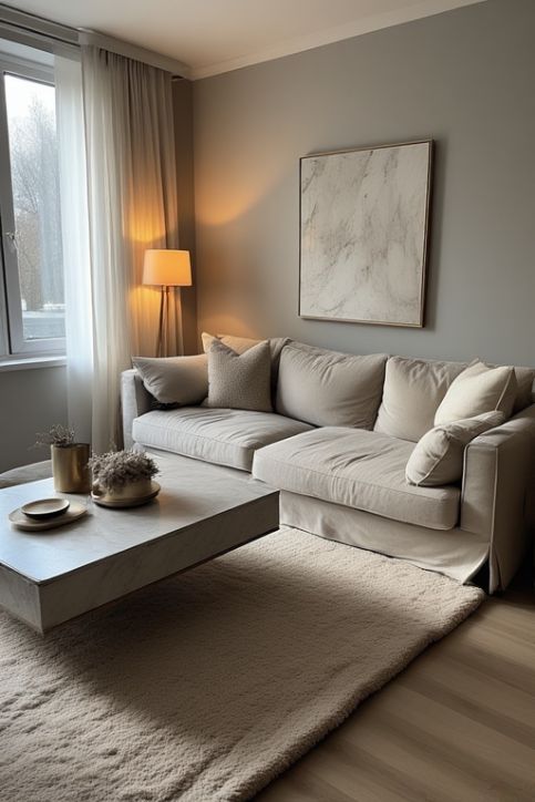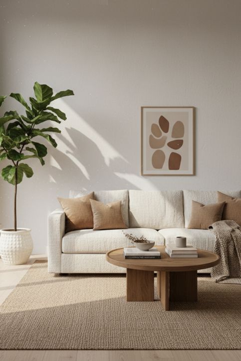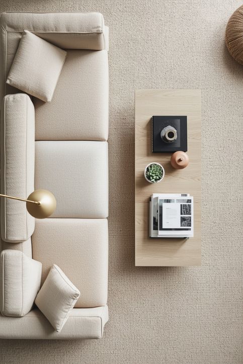 Pair a sleek ivory sofa with a statement brass floor lamp or marble coffee table. Add texture through a faux fur throw or woven rug. Neutral doesn’t mean boring — it’s timeless! Try products like minimalist velvet cushions or a gold accent mirror to elevate your decor.