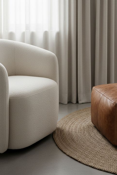 Layer textures thoughtfully: a boucle chair, a jute rug, and linen curtains. Stick to one color family but play with touch and depth. This balance creates visual interest while maintaining simplicity.