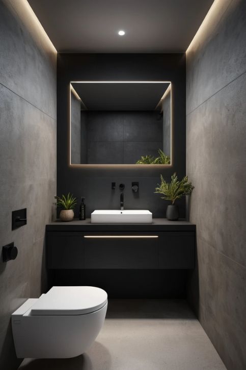 Floating toilets look ultra-modern and free up floor space. A softly backlit toilet wall adds a luxurious hotel-like vibe, making even small bathrooms feel stylish.