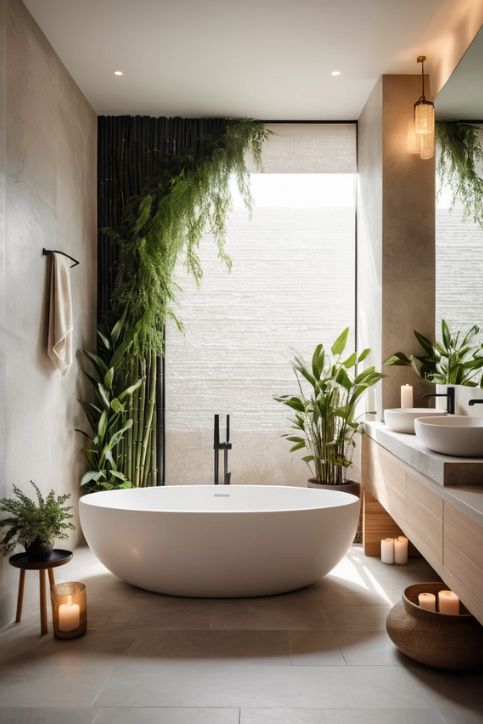 2026 bathroom design heavily embraces nature — plants, bamboo accents, and natural stones. This creates a soft, relaxing environment perfect for unwinding.