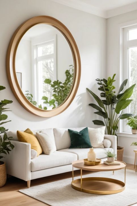 Mirrors are the oldest trick in the small-space book. A large round or arch mirror bounces light and makes the room look double in size.