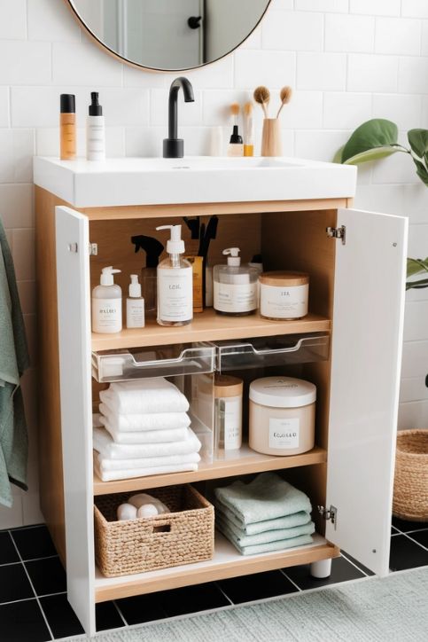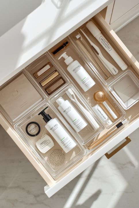 Arrange by use sequence—morning items in one section, nighttime in another. This makes daily routines calmer and cuts clutter instantly.