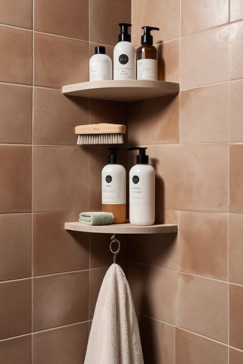 Keep it minimal—don’t hang every product you own. Choose two daily-use items and store the rest in a basket outside the shower to keep surfaces clean.