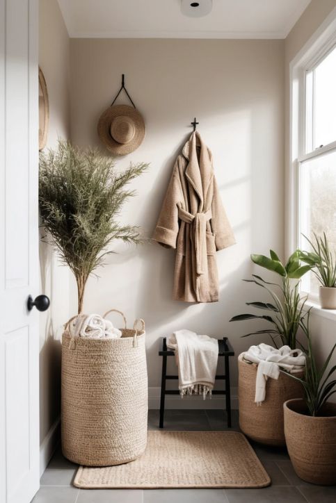 Match texture to your style: light wicker for airy minimalism, dark seagrass for warm winter coziness. Add a linen liner bag for wash day ease.